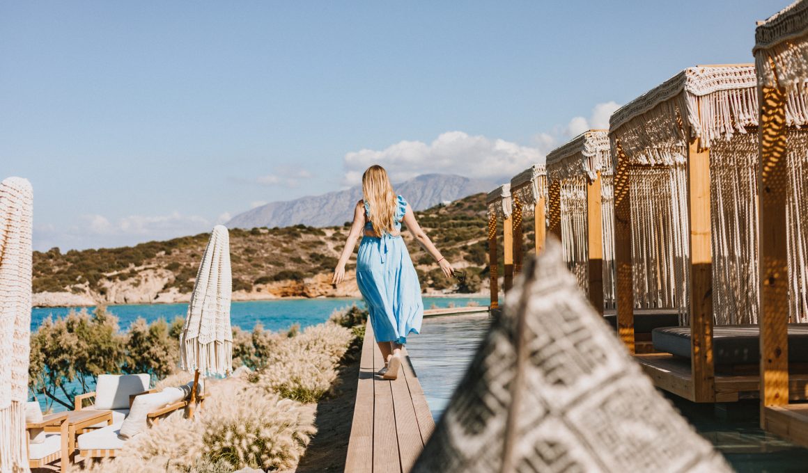 Das Restaurant Macrame hat erst im Spätsommer 2022 eröffnet und hat uns auf Anhieb mit der gesamten Gestaltung im Boho-Stil begeistert. Auf der großen Anlage tummeln sich schicke Daybeds mit eigenem Pool, weitere Liegen und Sonnenschirme. Von jedem Platz aus hast du einen atemberaubenden Blick auf der Meer und die Berglandschaft.